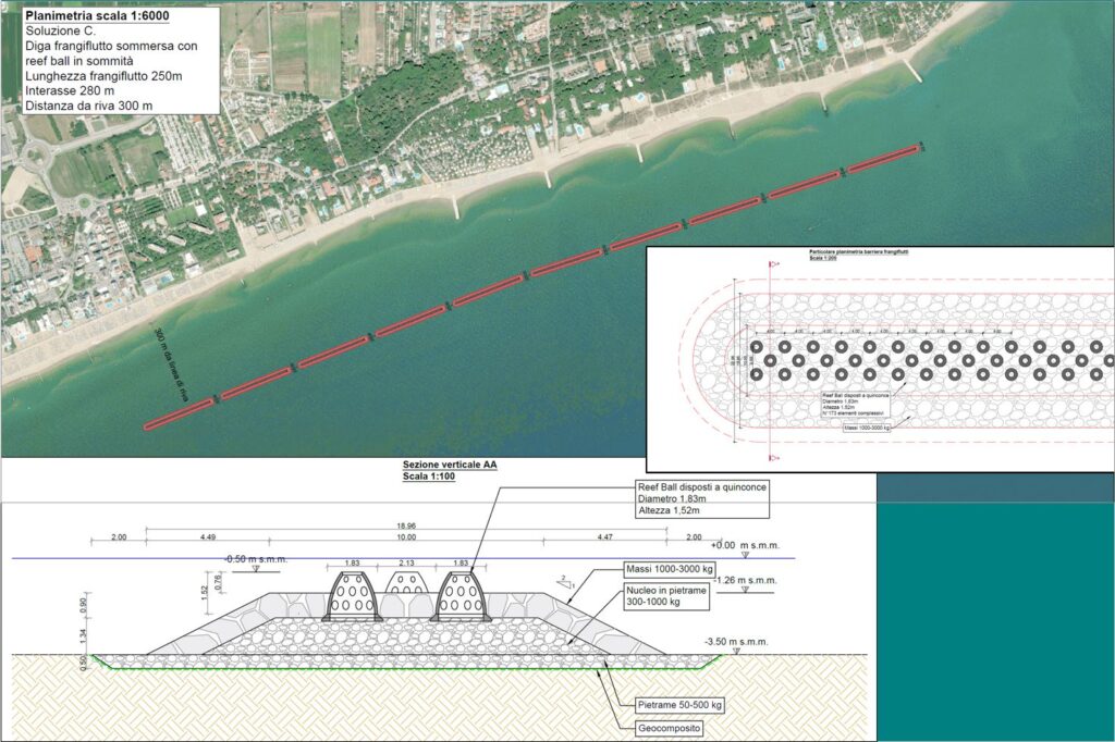 Der betroffene Abschnitt ist 2,6 Kilometer lang. Er reicht vom Piazza Torino bis zur Mündung des Flusses Piave. Doch Sand allein reicht nicht aus. Unter Wasser entstehen feste Barrieren. Diese liegen etwa 300 Meter vom Ufer entfernt. Auf diesen Barrieren platzieren die Techniker spezielle „Reef-Balls“. Diese Strukturen bremsen die Kraft der Wellen effektiv aus. Gleichzeitig bieten sie neuen Lebensraum für Fische und Pflanzen.